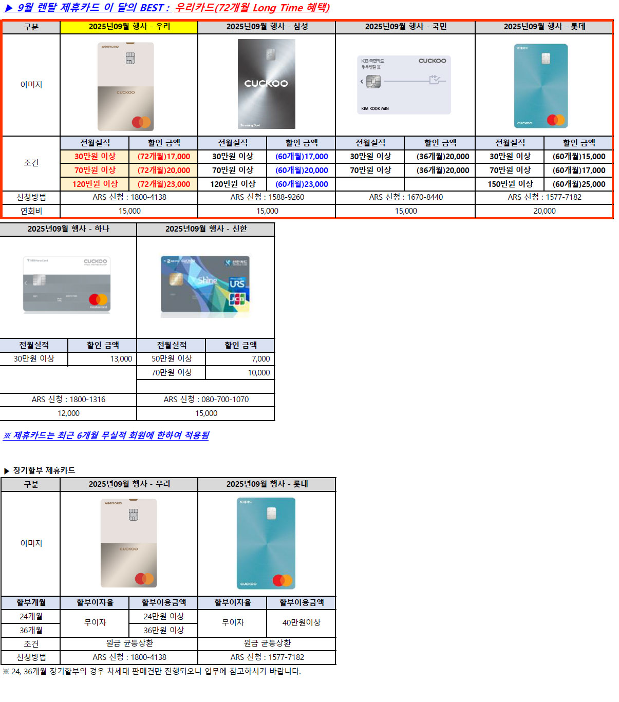 제휴카드 할인 적용시 월 렌탈료 : 98,000원